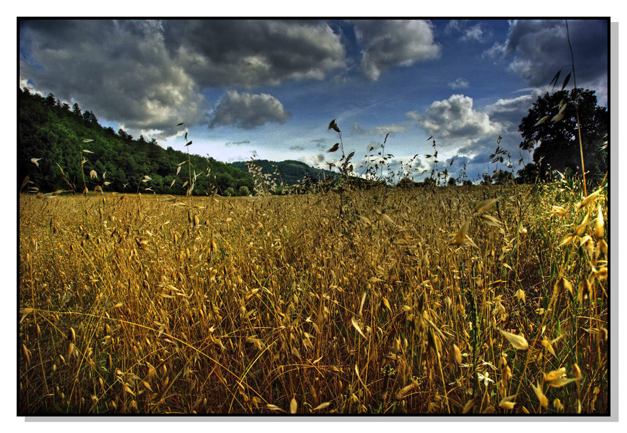 - effettivamente ZioMauri ha ragione le spighe di avena sulla dx sono un pò sovraesposte e la spiga sul lato destro arriva oltre il bordo del fotogrmma, cercherò la prossima volta di curare maggiormente la compo. Stasera quando torno a casa provo a postare una versione con una cornice più leggera