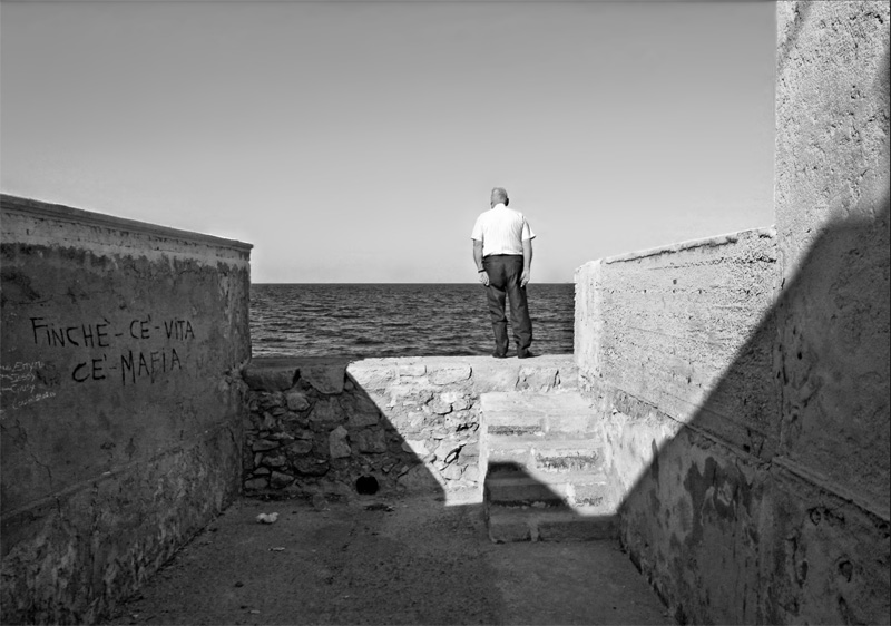 mi piace tantissimo, complimenti. il bianco e nero rende anche il mare drammatico, che è assolutamente adatto al messaggio pessimista scritto sul muro.