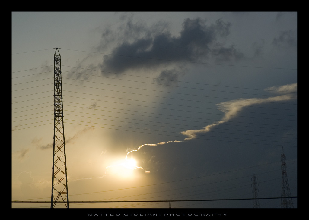 effetto ottico: la ripresa sembra far pendere un poco il traliccio di sx