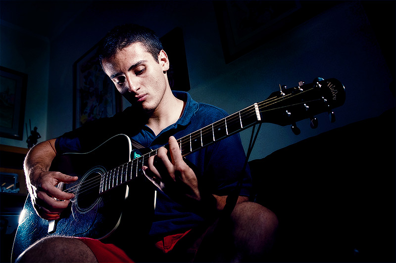 giusto 15 cm più in su..focalizzata più sulle mani....qui mi distraggono le gambe...i graffi della chitarra...non è che nn va bene..ma per l'aria raccolta che gli hai dato...per l'intensità dl blu...avrei focalizzato di più sul centro di interesse..resta comunque una foto che mi è piaciuta molto... Smile