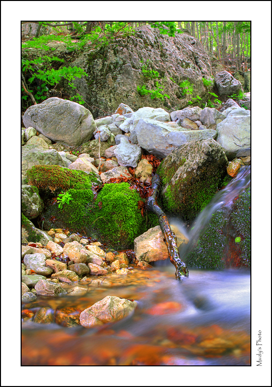 Molto piacevole e variopinto l'effetto in trasparenza dell'acqua del rio.