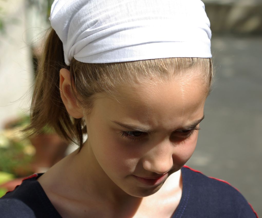 La luce troppo forte ti ha tradito bruciando la fascia della bimba, dando ombre dure e sgradevoli e costringendo la modella a tenere la fronte aggrottata e lo sguardo basso.