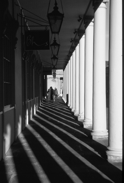 Mi pare un gran bello scatto . Luci e ombre si fronteggiano e si intersecano anche se avrei preferito che il punto di fuoco partisse dalla prima colonna per sfocare poi , mentre tu hai preferito focheggiare sulla signora . Forse una migliore scansione gli renderebbe giustizia , ma so quanto sia difficile trovare il giusto equilibrio.
