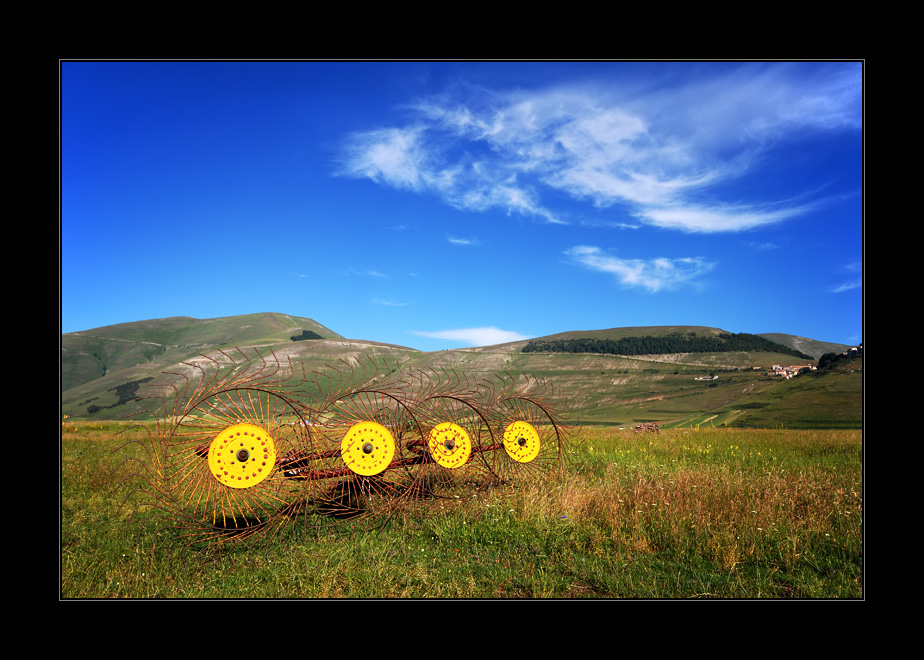 La stessa situazione della precedente. Ho solo leggermente cambiato la composizione posizionando le nuvole al lato opposto all'attrezzo agricolo.