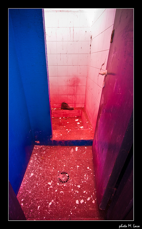grazie a tutti! qualche dettaglio sullo scatto: nulla è costruito, ho trovato la scena così. l'unico intervento da me effettuato sulla foto è una saturazione del rosso e abbassamento della sua "hue" (non so tradurlo). probabilmente era vernice e nella mia idea volevo che assomigliasse a sangue...