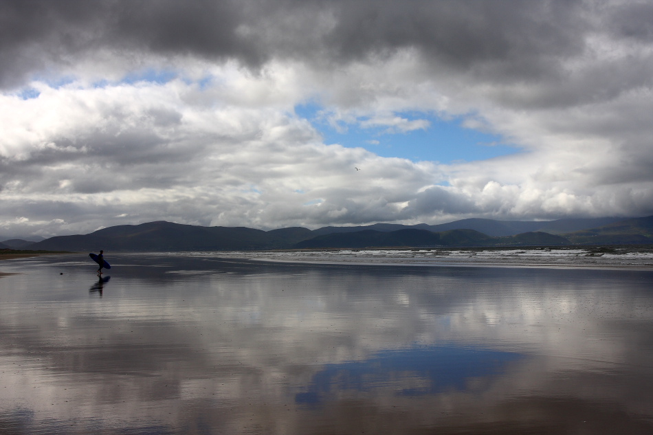 era talmente forte il riflesso del cielo sulla spiaggia bagnata