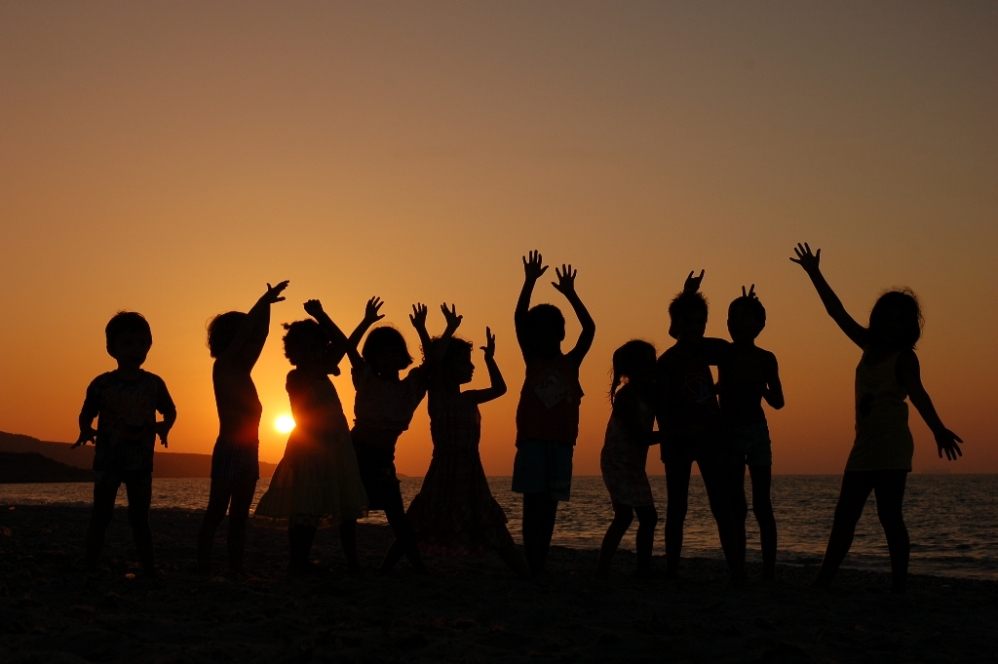 Non ho visto la prima ma questa mi piace molto... belle le tonalità di rosso e belle le silhouette dei bambini... anche il sole è nella posizione giusta