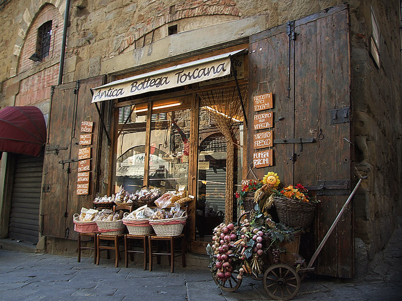Luce e colori sono molto gradevoli, anche la composizione non è male ; avrei però cerato di cogliere più particolari ( se possibile ) data la particolarità della bottega.