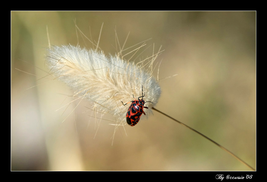 Bello il contrasto tra il colore forte dell'insetto ed il tenue e pastellato del resto della scena! Molto bella anche la composizione!  _________________ Riccardo Bruno |