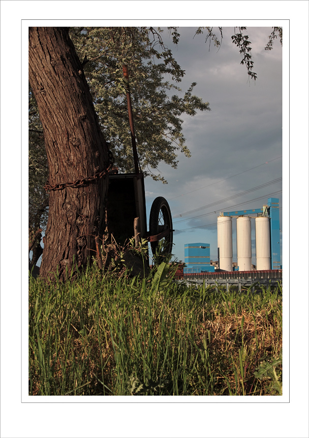 Guardando la foto da sx verso dx è straordinario come possa leggerci una storia: un evolversi, una modernizzazione...e così si passa dall'albero, alla pesante catena di ferro, al carretto, alle industrie sul fondo...persino l'erba sotto si fà bassa e + secca a questi passaggi..