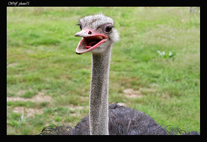 Lo struzzo è comunque bello che a fuoco e ha una espressione simpatica!