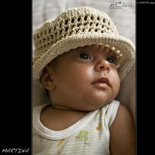 bella paciarotta ed espressione simpatica molto bel colta Smile non so se la dimensione (o la compressione) abbia introdotto un po' di disturbo (forse una questione di monitor), il berrettino e' simpatico ed interessante (fa un po' "retro'") ed il taglio non mi dispiace ma chissa' con un pelo d'aria in piu' ai lati per riprenderlo tutto. Pero' cosi' c'e' una bella diagonale (anche la cornice asimmetrica ci sta bene). Bella bimba Smile