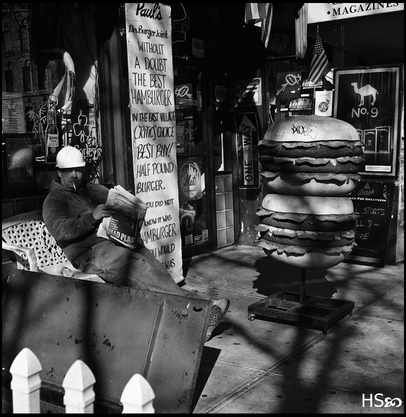 Tutti state dicendo che bella.....io vado controcorrente...a me nn dice nulla (mi scuso con l'autore se mi son permesso) se il signore stesse mangiando un panino, forse ci sarebbe un legame, o ci fosse un'azione del signore correlata con i grosso hamburgher, ma cosi personalmente nn la trovo per nulla interessante, per quanto riguarda il taglio vale la stessa cosa, sembra un punta e scatta classico.