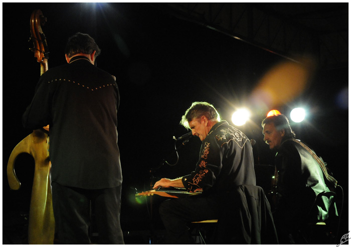 A livello di reportage toglierei la foto dell'hamburger dato che non ha nulla a che fare con la musica. Se vuoi proprio lasciarla, a questo punto, dovresti integrarla con altre immagini di particolari della serata (primi esempi che mi vengono in mente: la fibbia di qualche cintura, un cappello abbandonato su una sedia, robe simili).
