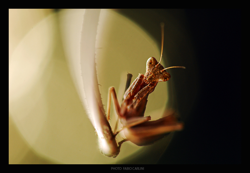 Particolare questo ritratto di mantide, molto bella ed evanescente uno scatto da incorniciare:ok: