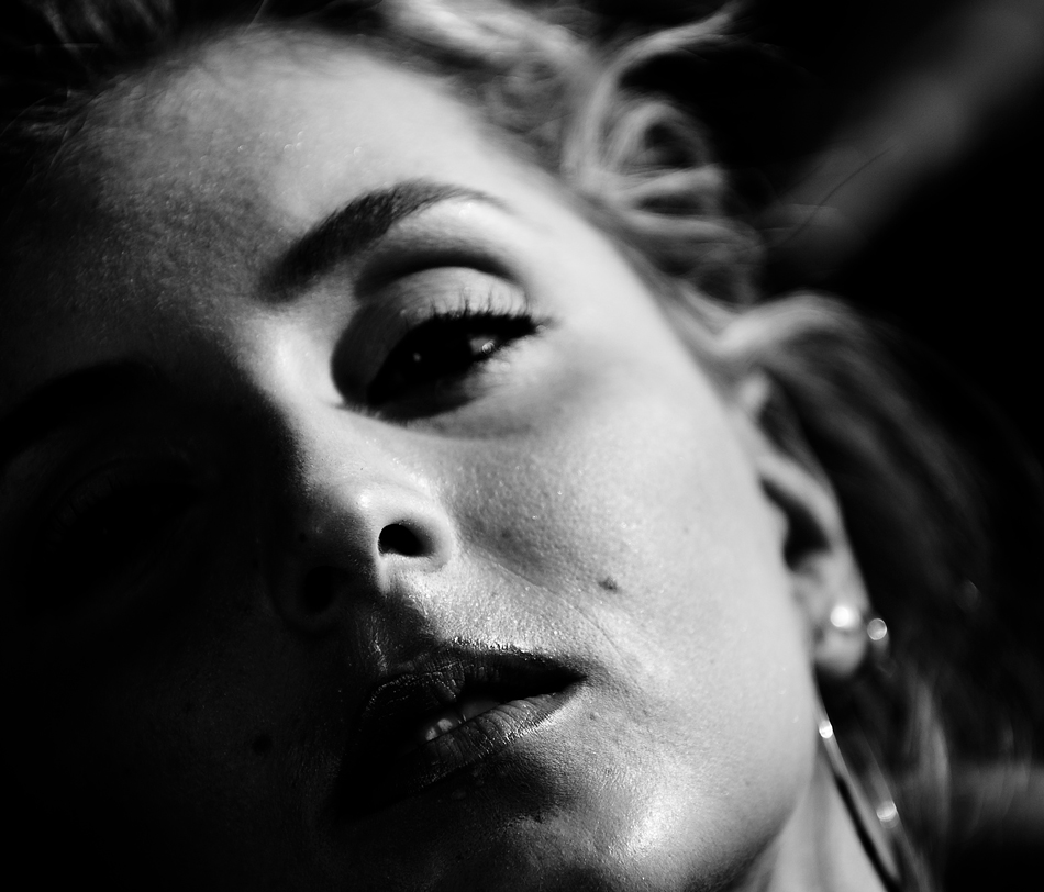 Mi piacciono il taglio coraggioso, il bianco e nero contrastato, la luce direzionata, l'espressione abbandonata e sognante, le labbra socchiuse.