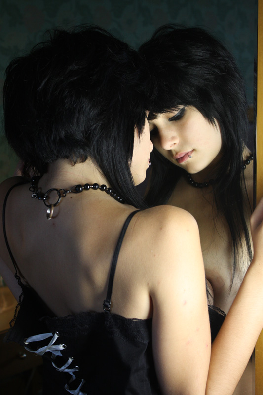 Beh l'immagine è ben realizzata sotto vari aspetti, ma non mi convince la composizione. Non avrei tagliato così la mano, nè il gomito. Il seno, punto di contatto tra le due "realtà" si lascia solamente indovinare. La mano soprattutto l'avrei fatta porre all'interno dello specchio... come se la modella lo volesse penetrare, nel tentativo vano di toccare con i sensi la propria interiorità.