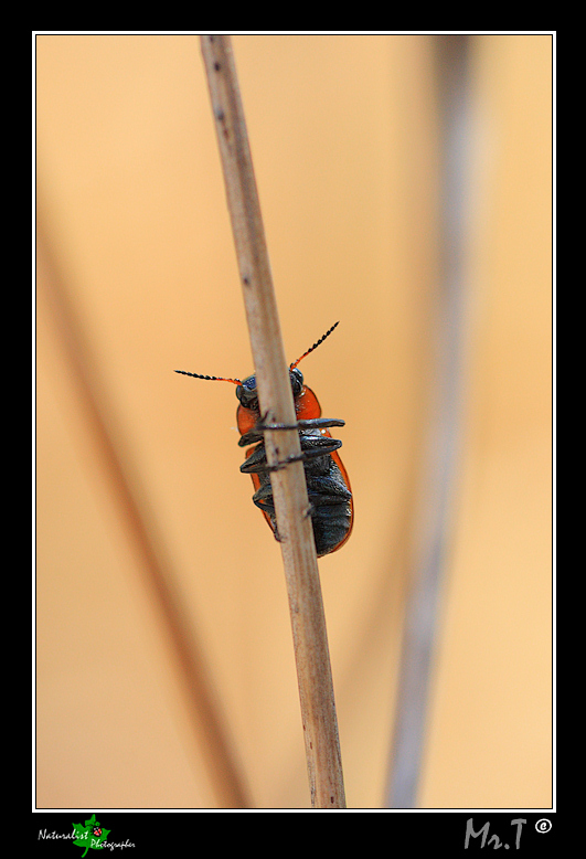 Titolo appropriato. Belle le tre diagonali che convogliano lo sguardo sull'insetto. Il timidone è ben illuminato sul bordo con un ottima maf.