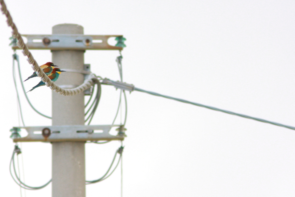 Non c'è un po troppo "sfondo" (cielo, palo ecc.) in proporzione ai due piccoli esserini colorati?
