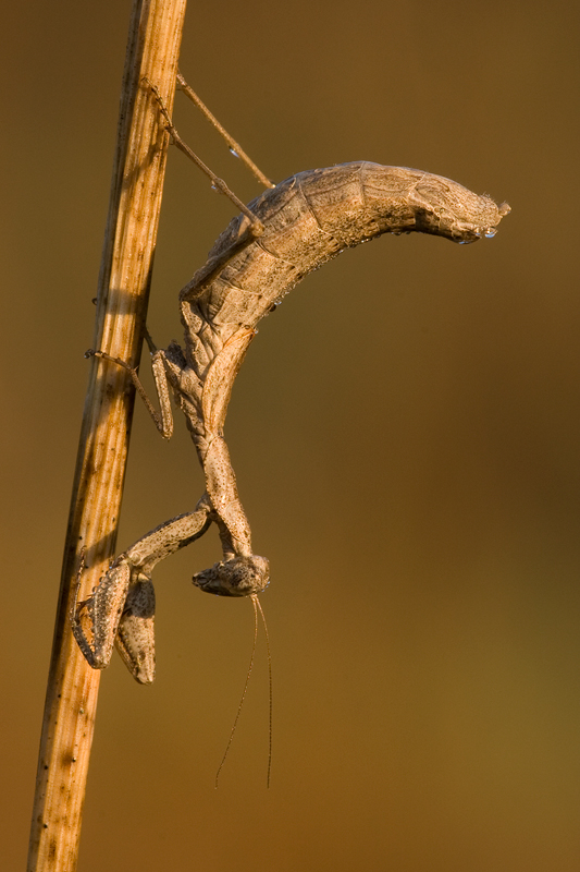 bella mantide, e colpita da una luce naturale veramente delicata,.. si vede bene la gocciolina, ma non solo quella..anche le altre piccole, piccole,..soprattutto nella versione highres..