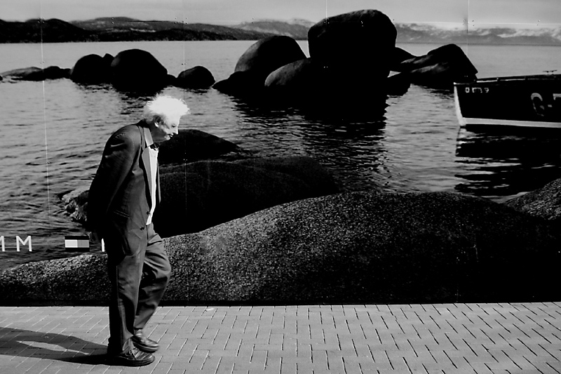 Il signore è un soggetto davvero azzeccato, con la sua capigliatura "einsteniana", con l'espressione assorta da chissà quali pensieri, con l'incedere raccolto nelle sue riflessioni.
