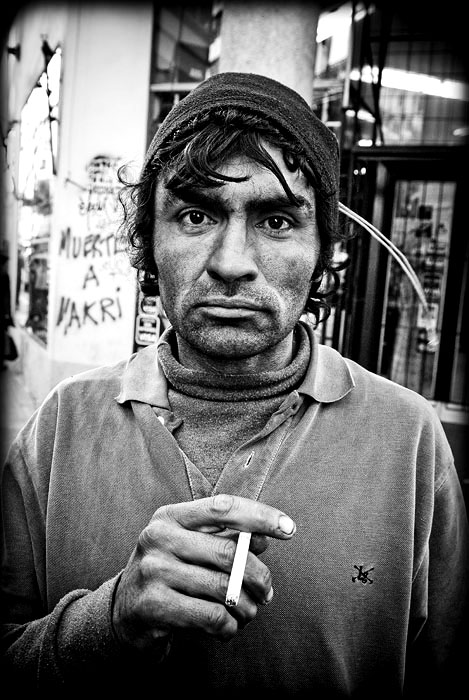 Molto bella la sigaretta in primo piano, ti fa vedere quello che realmente c'e' dietro queste persone. Recuperare il cartone per 2 soldi e poi fumarli, senza magari aver da mangiare.