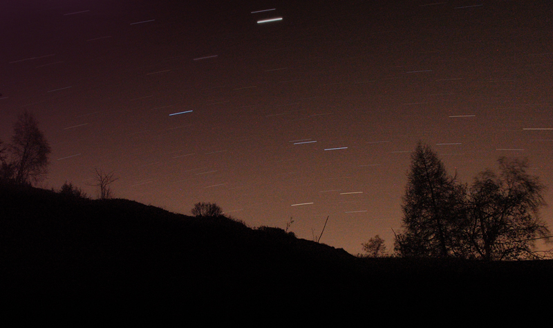 Per dare l'effetto "scia" alle stelle io ho lasciato esposto per circa 5 minuti e hanno già fatto un bel pezzettino!