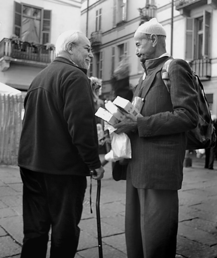il sorriso di uno e il movimento della mano dell' altro rendono ,secondo me ,eloquente la foto. mi piace. penso che in questi casi convenga scattare senza pensare troppo alla tecnica. ciao. Ok!