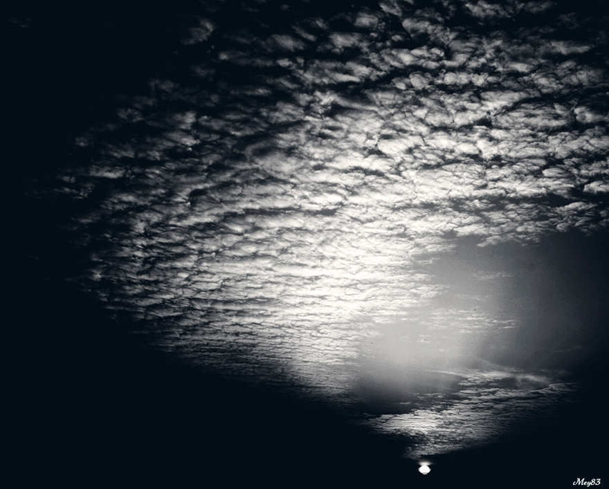 Scatto nato per caso, qualche sera fa... Un tramonto bellissimo...il cielo era pieno di piccole nuvolette...ed io ho scattato Poi ho passato tutto in bn e giocato un pò con le curve in PP....