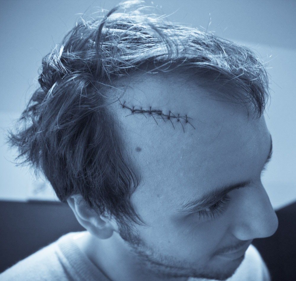 Scusami, non avertela a male, ma non riesco a scorgere il significato di questa foto: forse ci vuoi dire che bisogna "usare la testa" nella pratica della moto, della bici o quant' altro per evitare di farsi suturare con questa sequela impressionante di punti ? Quando va bene...Già !