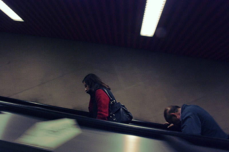 Sono d'accordo con Sweet, la metro riesce sempre ad offrire atmosfere particolari e spunti interessanti.. In questa tua immagine il tono scuro e il gioco sofferto delle fonti luminose ha giocato assolutamente a tuo favore, sottolineando la sensazione di solitudine che la donna che sale e l'uomo che guarda attento verso i gradini mobili per non cadere contribuiscono a creare..