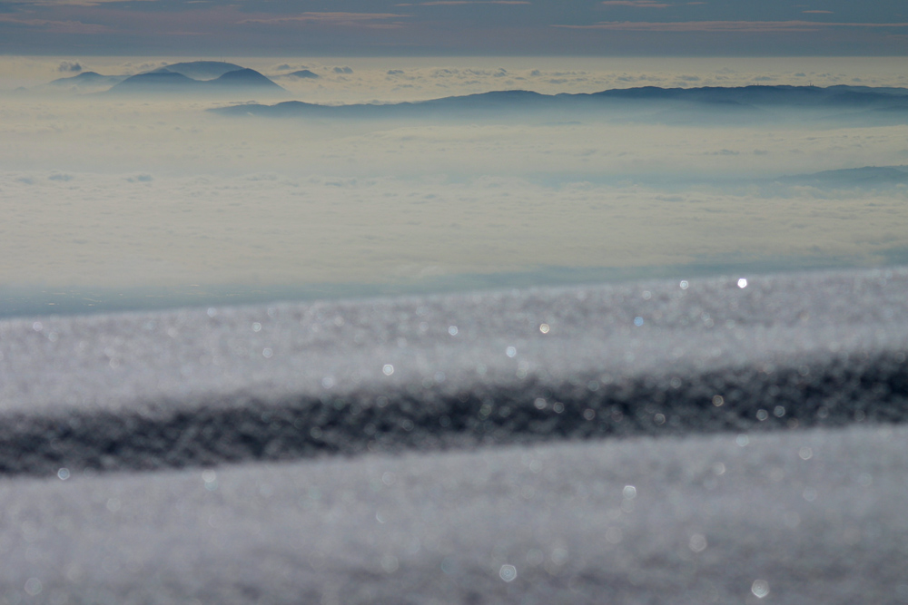 Vista su pianura veneta, Colli Berici ed Euganei dalle Prealpi vicentine. Gennaio 2008.
