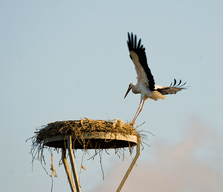 Una cicogna che attera sul nido. Sempre elegante questo volatile in tutte le circostanze.