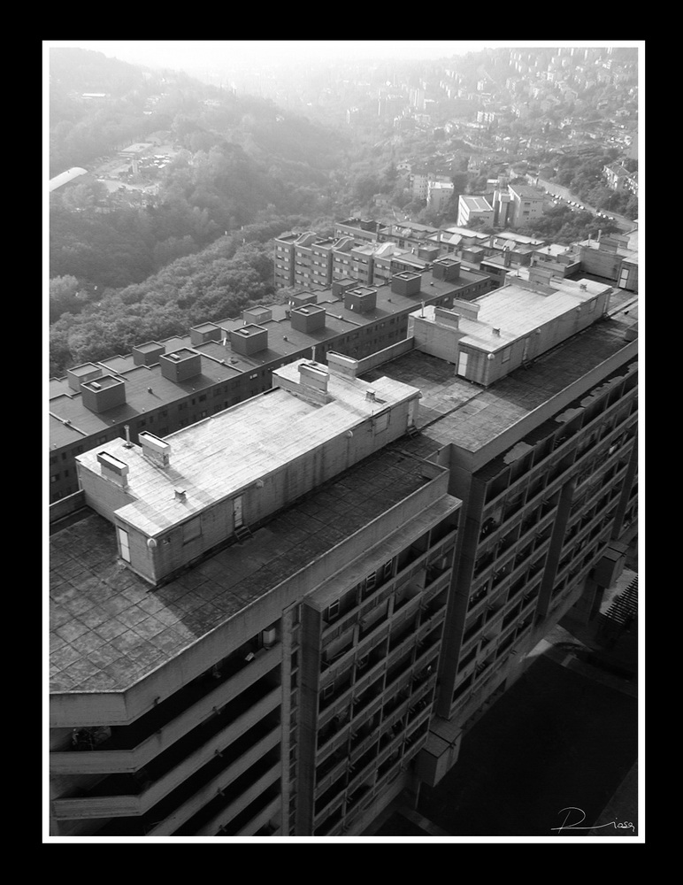 Non avrei incluso così fortemente il paesaggio in fondo, probabilmente mi sarei concentrata solo sulle palazzine aggiustando un pò l'inquadratura, ma volendo includere anche la zona superiore dell'immagine, avrei prestato attenzione alla forte luce.