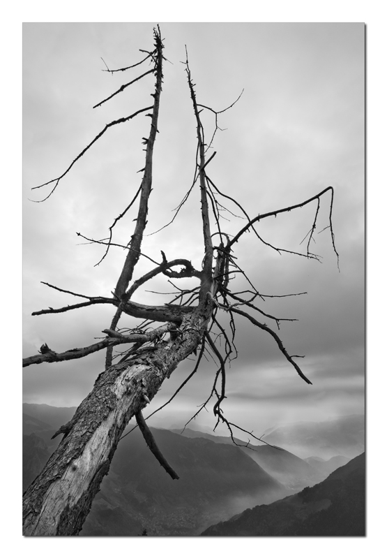 Foto molto bella e ben costruita; davvero piacevole anche lo sfondo, con le montagne e la nebbia.