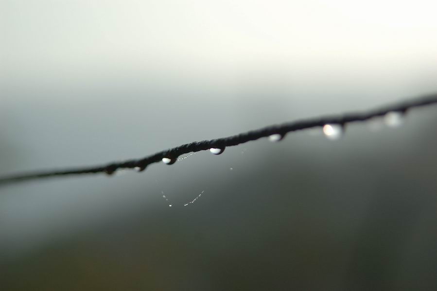 La messa a fuoco è indecisa sulle gocce centrali in corrispondenza alla ragnatela, ed in questo caso essenziale per la riuscita della foto.