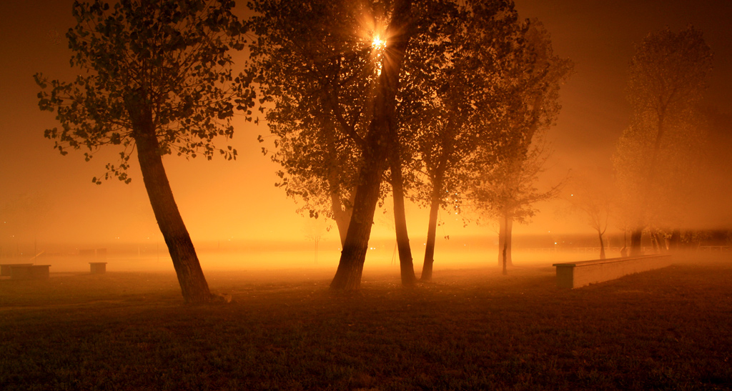 ciao mauro..la foto e' completamente naturale e la luce e' data da un lampione a colori caldi unitamente alla bella nebbia che si era formata..mi trovavo per caso la' ed ho poggiato la macchina fotografica su un bidone dell'immondizia...ciao e grazie di nuovo