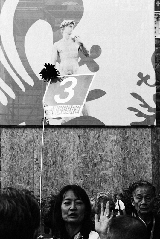 Se ci devo trovare un limite direi la leggera penalizzazione delle persone sotto data dal taglio: un leggero spostamento dell'inquadratura più in basso forse l'avrebbe equilibrata meglio.