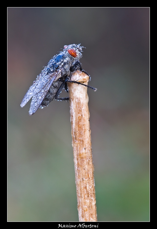 Un grazie di cuore a tutti, cari amici... a dire il vero questo scatto non mi soddisfa per via della nitidezza che si perde sul finire delle ali... mi piaceva la posa della mosca appesantita dalle gocce, quasi abbarbicata sullo stelo. Ciao