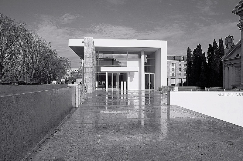 Occhio all'ombra in primo piano, e occhio anche alla distorsione delle linee.. vedi che la copertura dell'Ara Pacis non è perfettamente orizzontale?