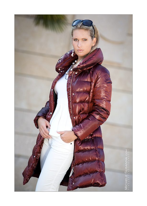 Bella modella. Non mi piace il taglio, per due motivi: innanzitutto è troppo scontato (anche se sono invidioso, facessi io foto così e avessi una modella che si prestasse allo scopo...) e poi non mi piace il taglio sopra le ginocchia, avrei preso solo dalla vita in sù.