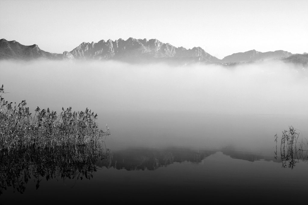 Dunque, la foto mi piace, l'idea del riflesso del monte nell'acqua, separato dalla nebbia, è veramente buona, anche il canneto ci stà bene, mi sembra però che manchi un po di forza sopratutto in alto, un po piu di contrasto, questa è la mia opinione.
