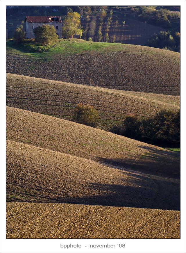 bel paesaggio ben gestito, proverei anche un taglio piu' stretto solo sulle onde delle colline escludendo la casa in alto, uno scatto nello scatto.