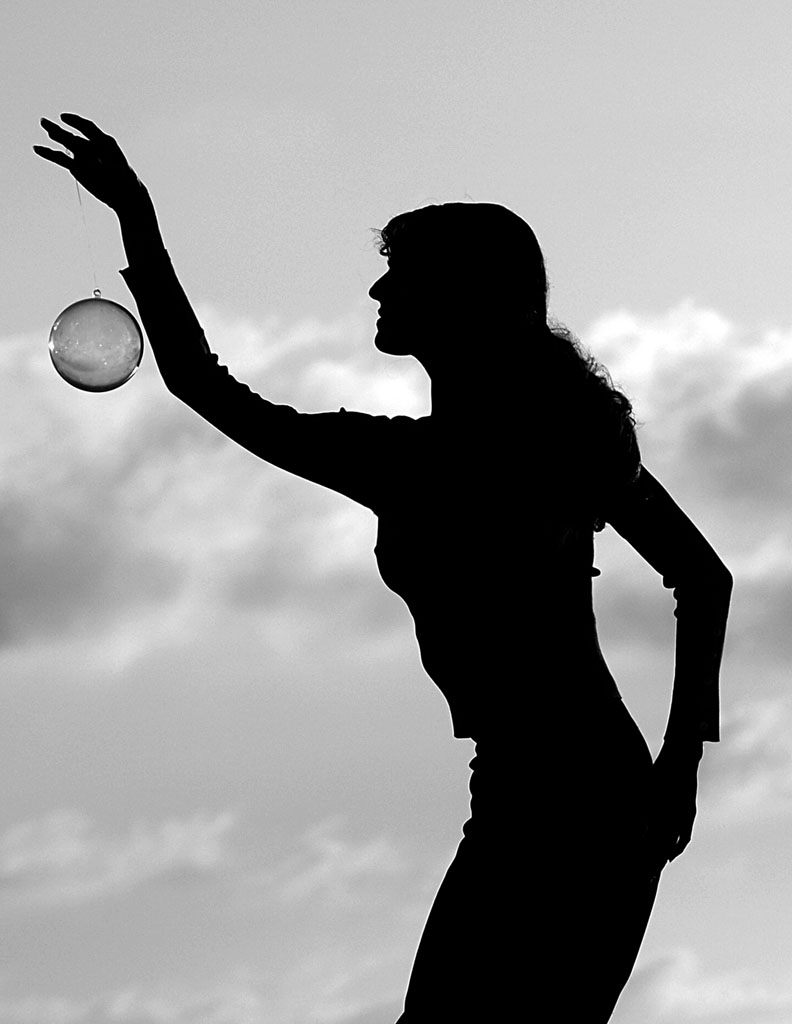 Secondo me, visto che hai escluso la parte bassa, sicuramente per togliere dalla scena degli elementi di disturbo, questa l'avrei pensata quadrata, prestando attenzione che il braccio che sorregge la sfera partisse proprio dall'angolo, cambiando chiaramente inquadratura, e cercando di creare con la silhouette una figura armonica, usando l'altro braccio in una posizione di uscita all'angolo basso, anche perchè cosi sovraposta al corpo (il braccio) non risalta molto.