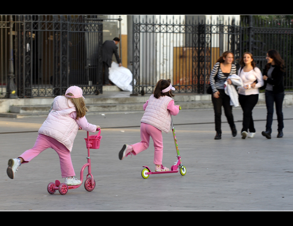 tuttavia si è portati a guardare il trio di ragazze verso cui si dirigono le bimbe, il che distoglie l'attenzione.. (meno bene )