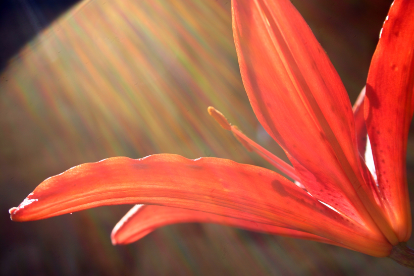 bella la luce e ben gestita, colore ammaliante quello del fiore, un po' perplesso per il taglio soprattutto in alto, l'avrei visto meglio con la fonte luminosa ed il petalo non tagliati. Qualche dubbio anche sulla maf un pelo troppo morbida ed indefinita, credo fosse meglio cadesse sul pistillo centrale che con questa composizione risulta essere il soggetto in quanto proteso verso la luce ed al centro della composizione.