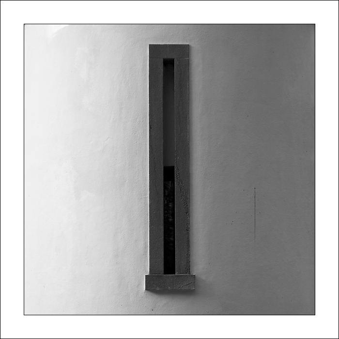 Bella, semplice, essenziale, diretta: un solo elemento architettonico che crea un gioco veloce di volumi e di linee.. ottima la ripresa perfettamente centrale, fa sembrare il tutto quasi un occhio aperto su questo muro.. ottimo il gradiente della luce sulla superficie, che si distende sul tutto senza creare salti bruschi di luminosità..