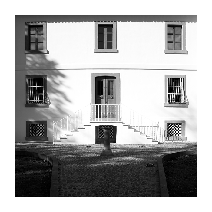 Bella l'ombra dell'albero sulla casa, bello il bn i bianchi forsa al limite