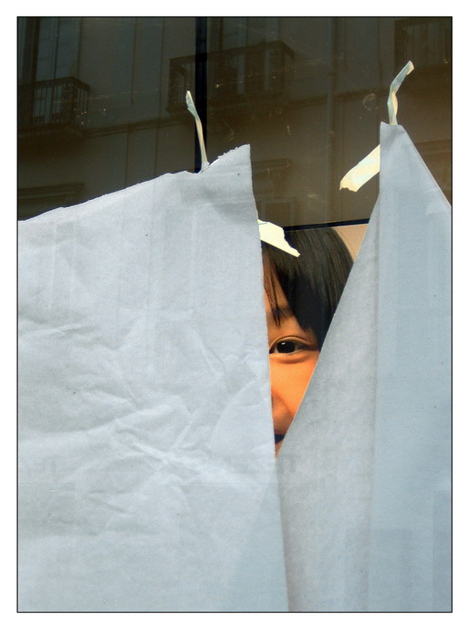 Non ci ho pensato a scattarne un'altra, mi sono contentato solo di questa: (ora inzio con le scuse lagnose Ops ) : la giornata era piovosa e i passanti erano pochissimi o rintanati sotto i balconi o sotto i loro ombrelli; inoltre volendo optare per una ripresa + frontale e + ampia avrei perso quell'occhio nello spigolo,avrei guadagnato invece d'acqua. Purtroppo mi sono fatto bastare solo quell'occhio , con lo sguardo in camera,+ o meno, quindi ho pensato che "l'altro" è chi guarda la foto..