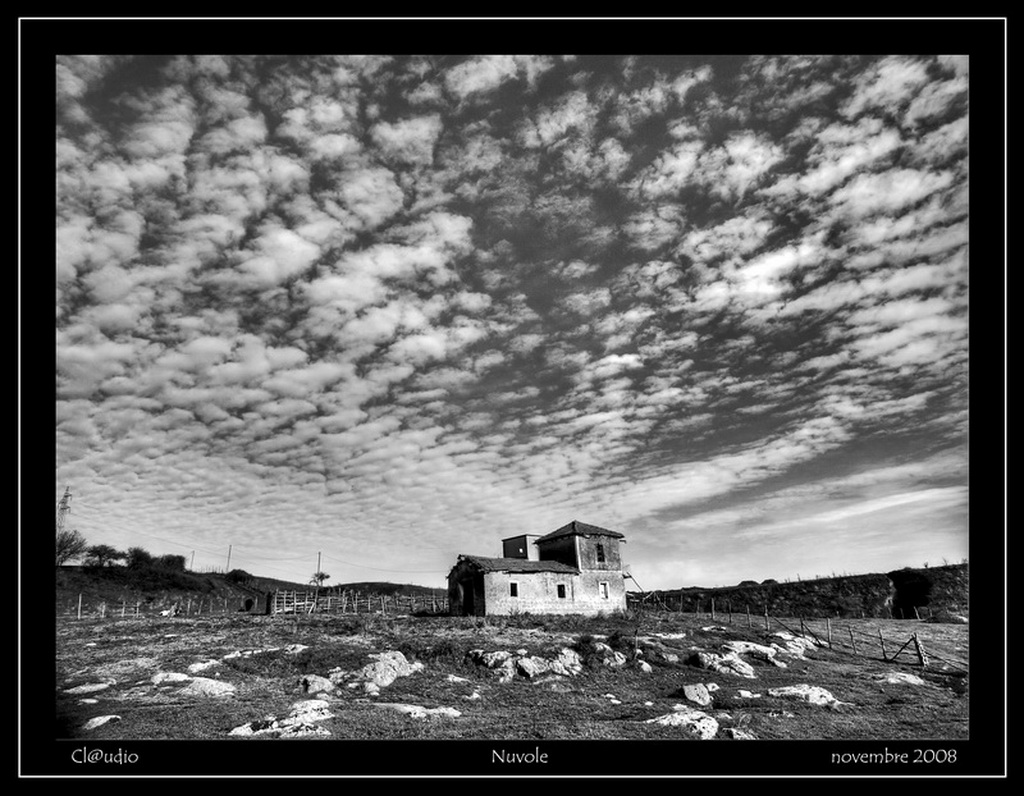 ..eccezionale la caratterizzazione del cielo..... le nuvole che paiono aspirate da un'aspirapolvere gigante posto subito dietro alla casa rendono lo scatto interessante e puntano lo sguardo dritto sulla piccola costruzione....... peccato che proprio questa appaia poco definita...e con alcuni bianchi un po altini...... una leggerissima rotazione verso destra avrebbe tenuto fuori il traliccio che ora appare dal bordo sinistro....